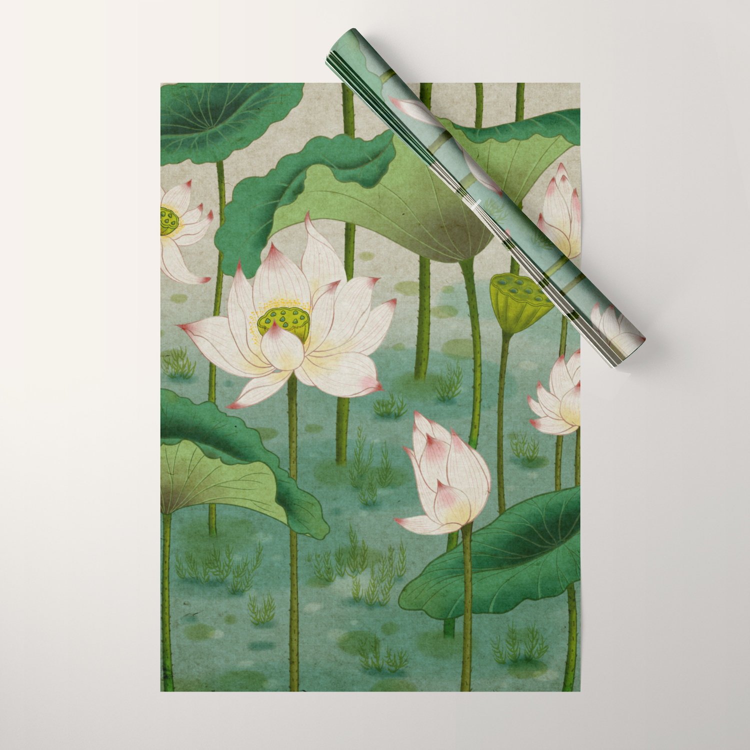 Lotus Flowers B Minhwa Korean Traditional Folk Art Wrapping Paper By Mins Illust Society6